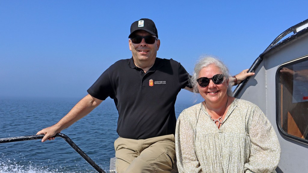 Syftet med resan var att i någon form fortsätta traditionen från tiden då landshövdingen i Östergötland var ordförande i Skärvårdsfonden. Vi tog tillfället i akt att visa och berätta om de utmaningar det är att vara skärgårdslantbrukare och mer allmänt att bo och bedriva näringsverksamhet i skärgården. Första besöket var därför hos Jonas Andersson på Kättilö. Under resan fick vi också tillfälle att på håll se både resultatet av Jonas landskapsvårdare och att se dem i sitt dagliga arbete med att hålla skärgården öppen. (Bild på djuren)