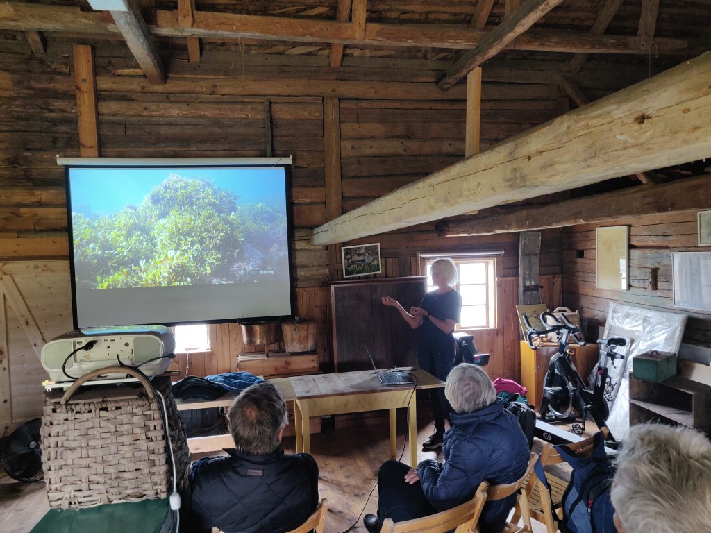 Vi fick ta del av fina bilder och många intressanta inblickar om marina naturvärden. Östersjöns ekosystem är på många vis drabbade och på flera sätt i obalans men jämfört med andra delar av ostkusten har vi relativt friska vattenmiljöer i Gryts skärgård. Här mynnar inte några större vattendrag, som Motala ström eller Nyköpingsån.